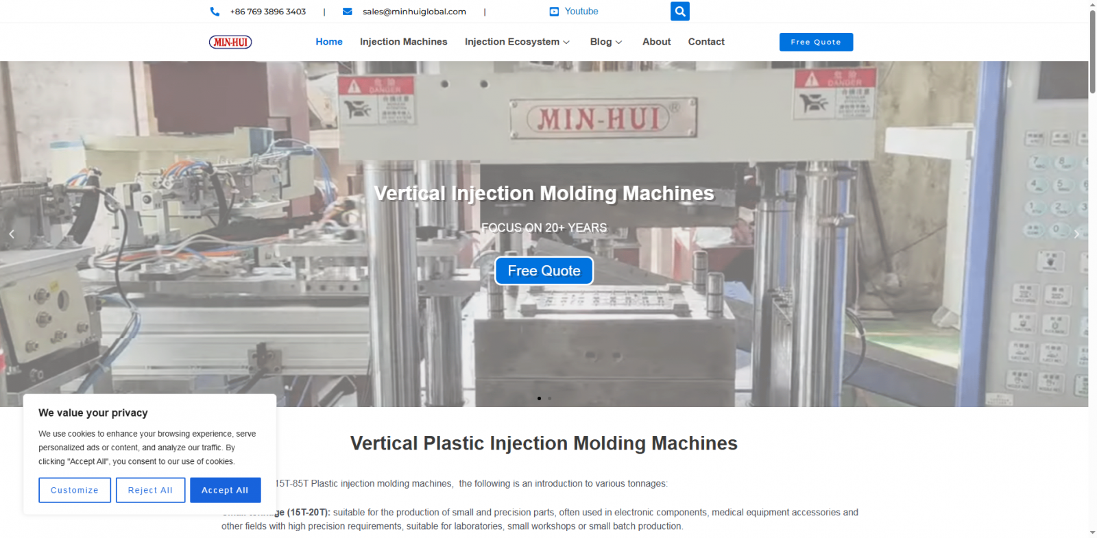 MIN-HUI专业生产应用于医疗器械行业、眼镜行业、硅胶行业的立式注塑机。