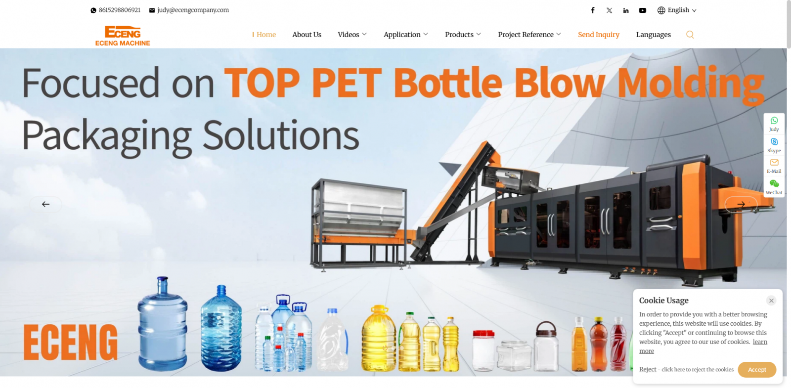 Eceng Machinery是一家在中国拥有15年历史的PET瓶拉伸吹塑机制造商。