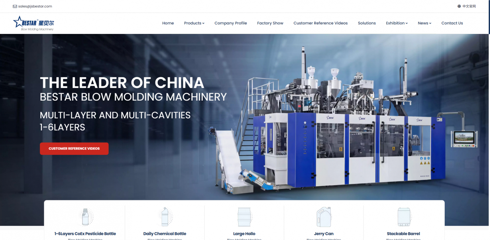 Bestar Machinery提供100ml-1250L PP PE HDPE瓶吹塑机。吹塑机用于罐装、可堆叠桶、奶瓶、塑料桶、日化瓶等。Bestar Machinery将根据您的需求提供专业的吹塑机解决方案。