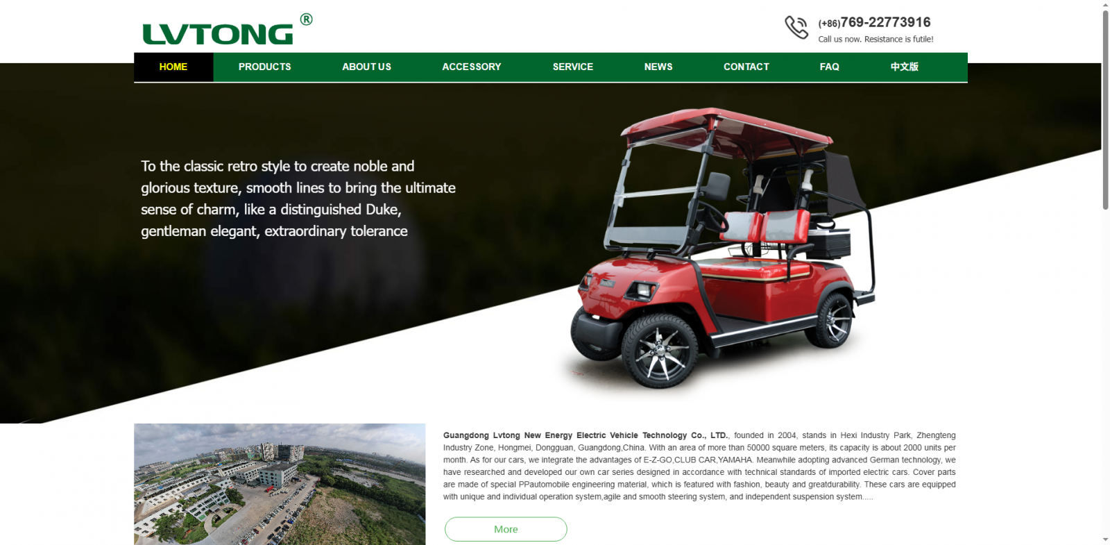乐通成立于2004年,位于中国广东省东莞市。占地5万多平方米,月产能约2000台。至于我们的汽车,我们整合了E-Z-GO、CLUB CAR、YAMAHA的优势。